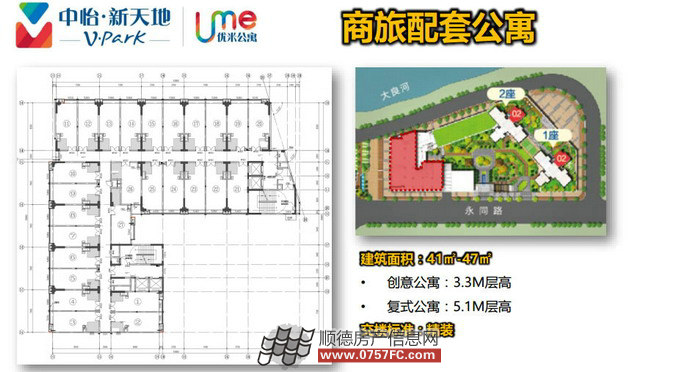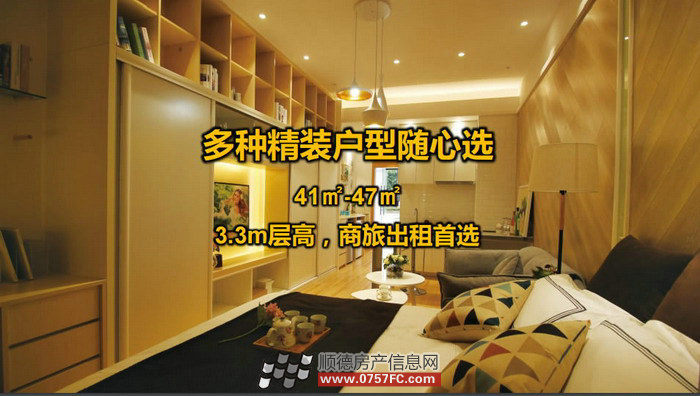 顺德核心区域,精品公寓面积约41㎡-47㎡,平层高3.3米,复式高5.1米!一轻轨、三地铁、三高速!