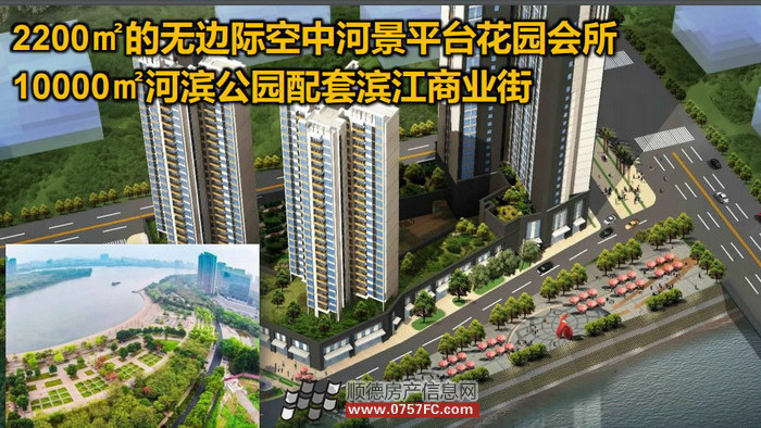 6、配备2200㎡的无边际空中河景平台花园会所,1.2万方商业配套